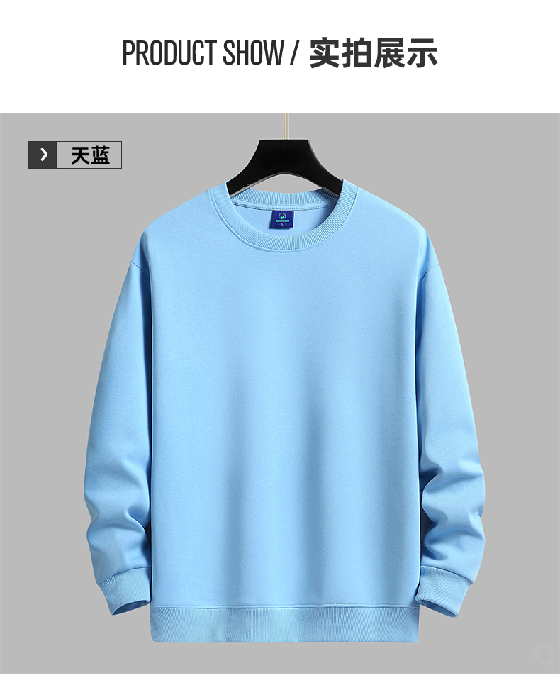品牌棉致纯色内搭加绒卫衣男青年圆领蓝色保暖上衣秋冬情侣打底衫