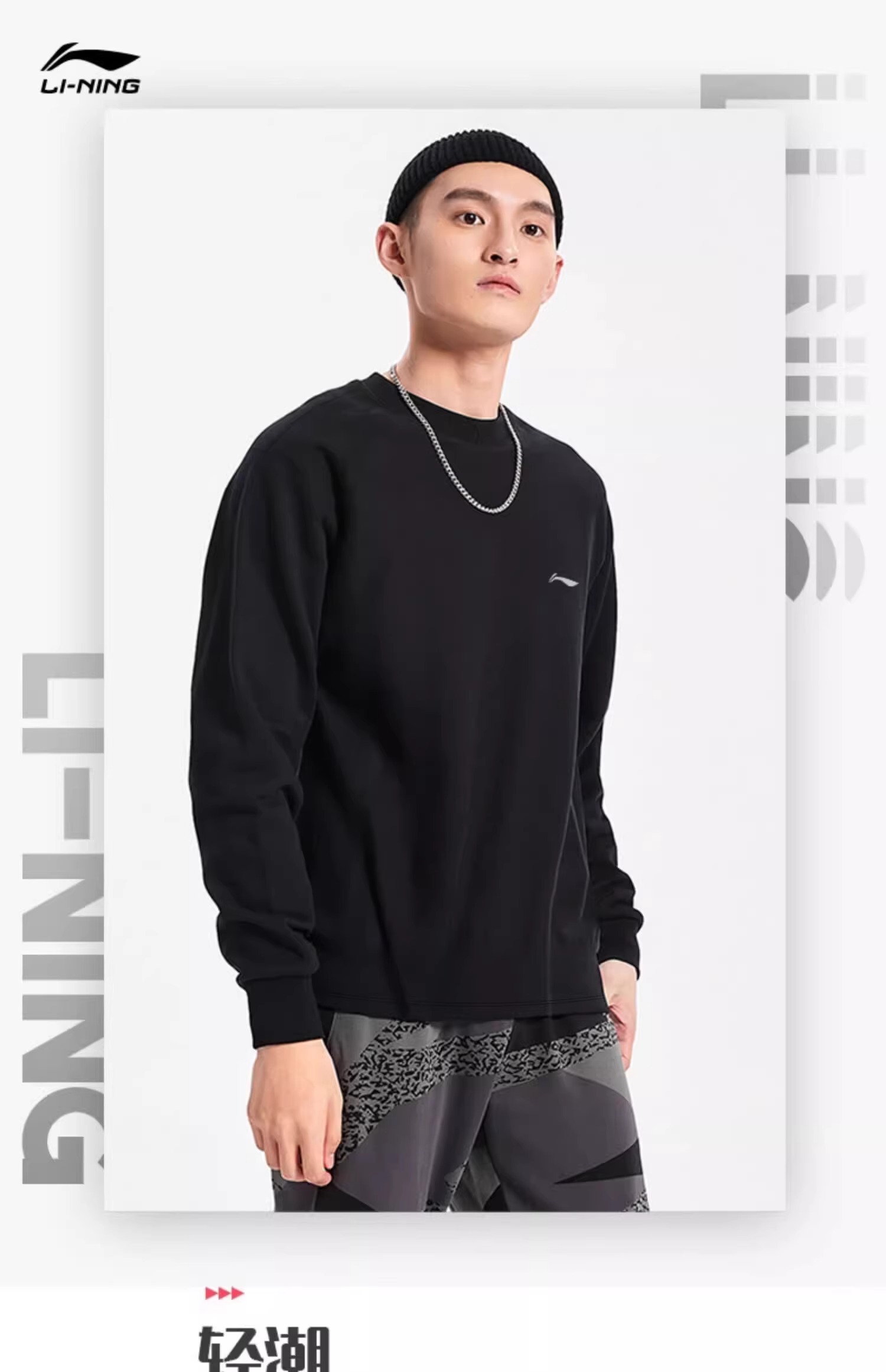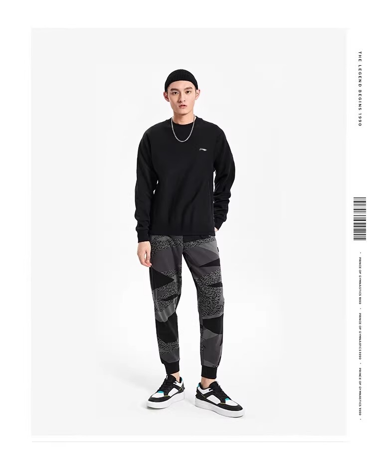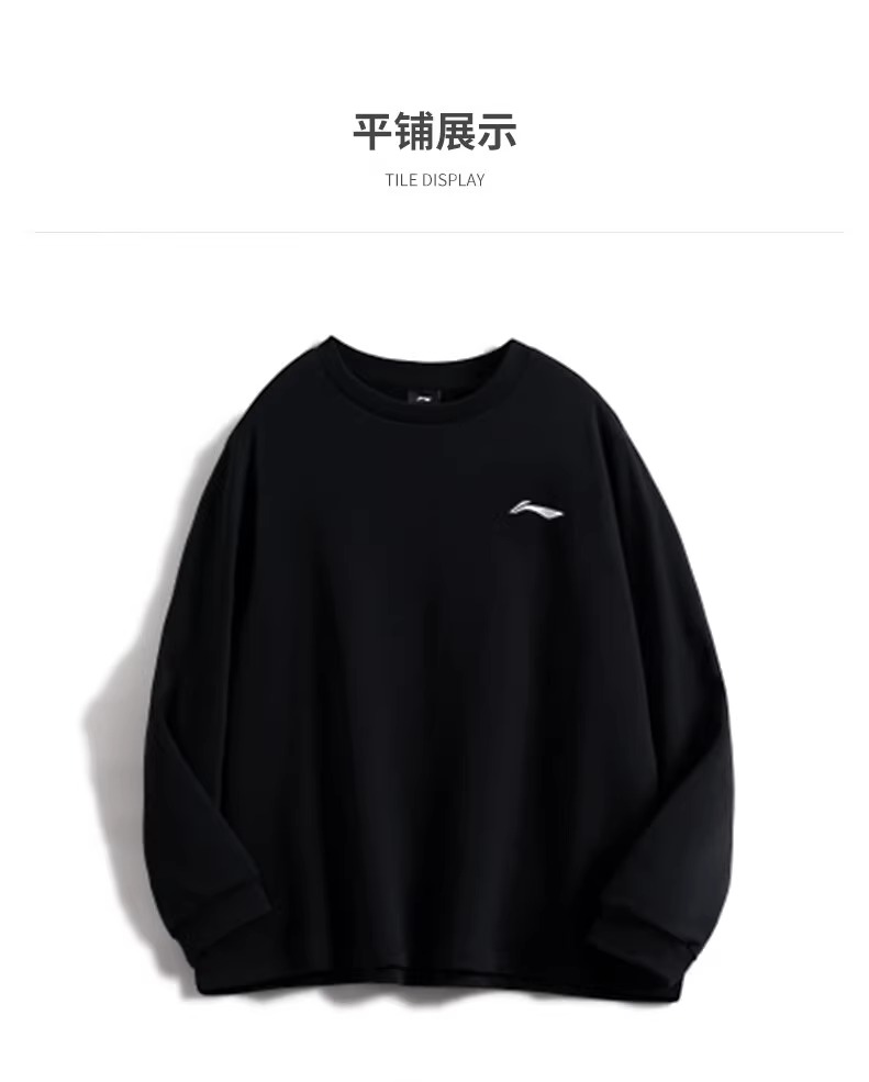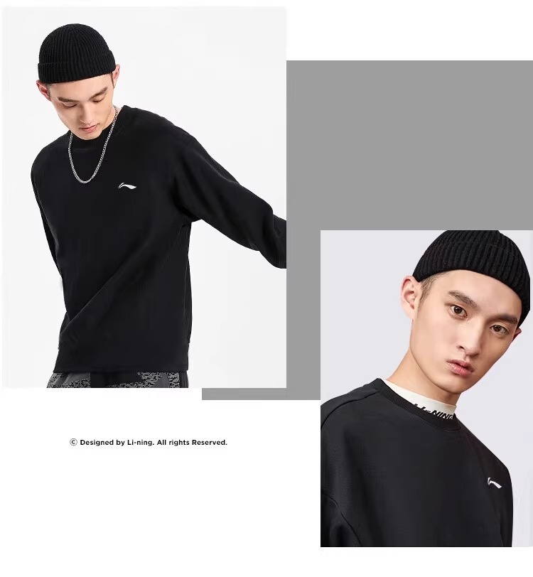 李宁卫衣男春秋新款黑色圆领套头衫正品大码宽松外套休闲长袖上衣