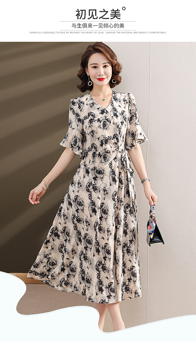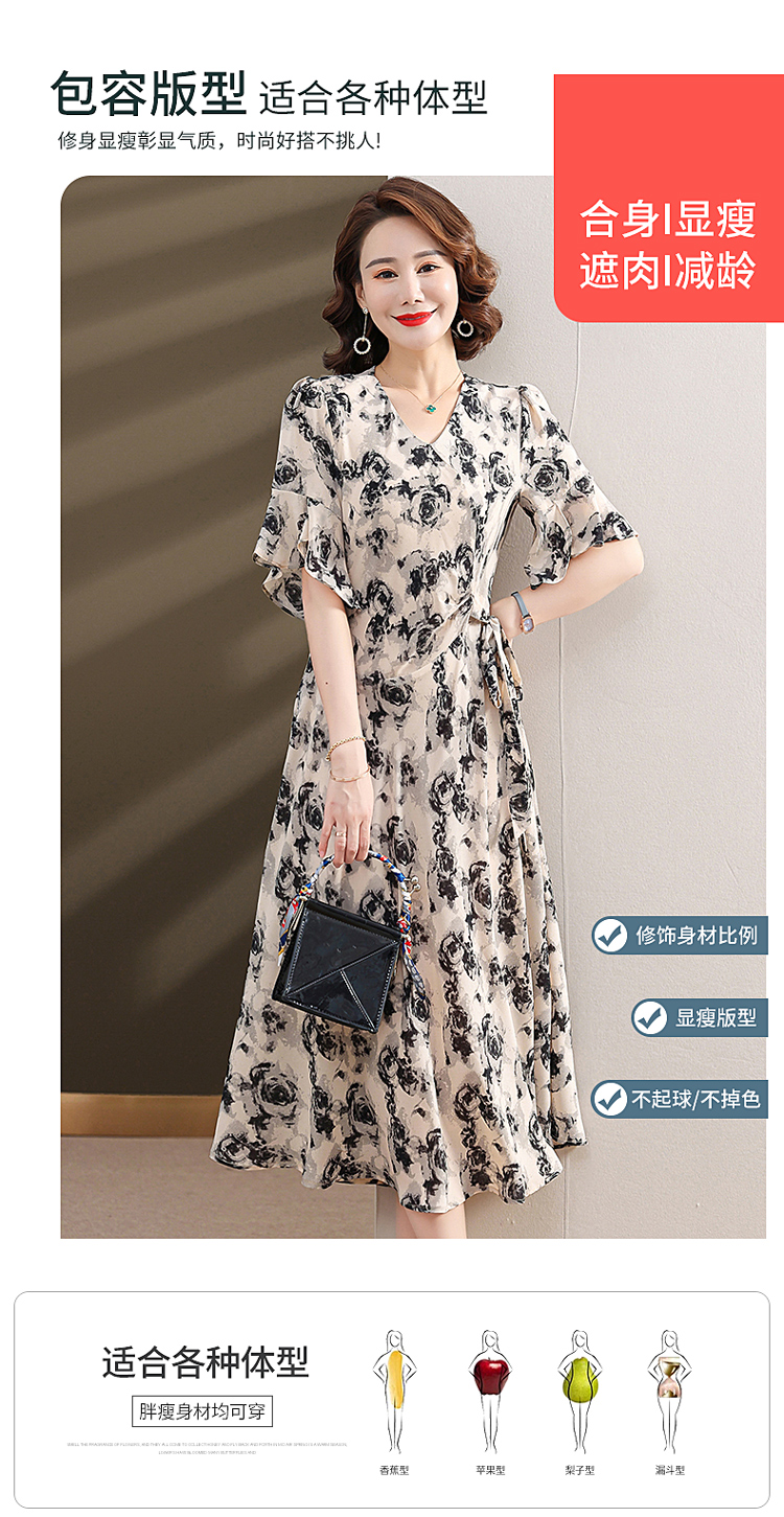 妈妈夏装连衣裙气质2025新款时尚高贵中老年女人夏季收腰裙子洋气