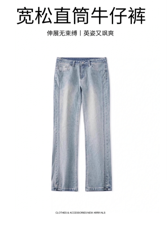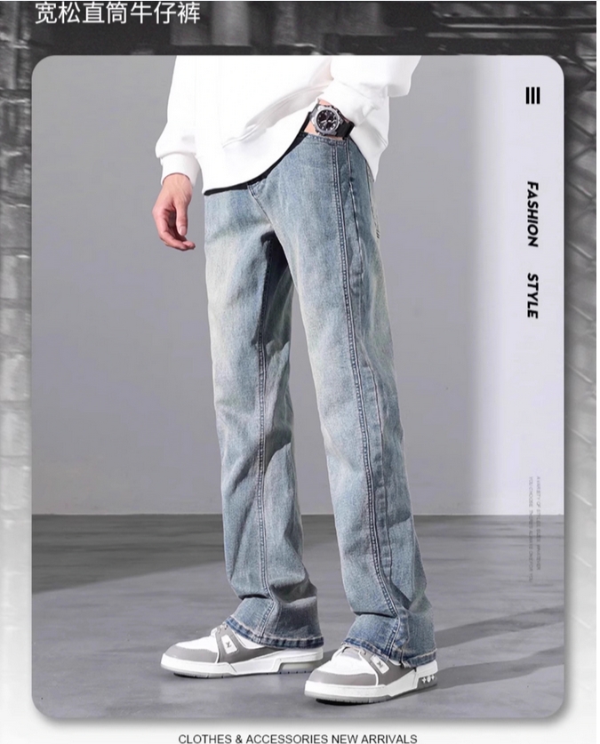 真维斯牛仔裤男款2025年春秋款美式宽松直筒微喇叭长裤子男生夏季