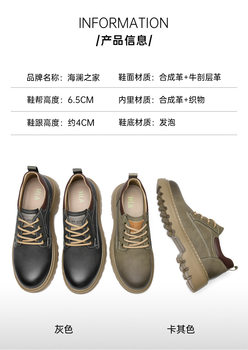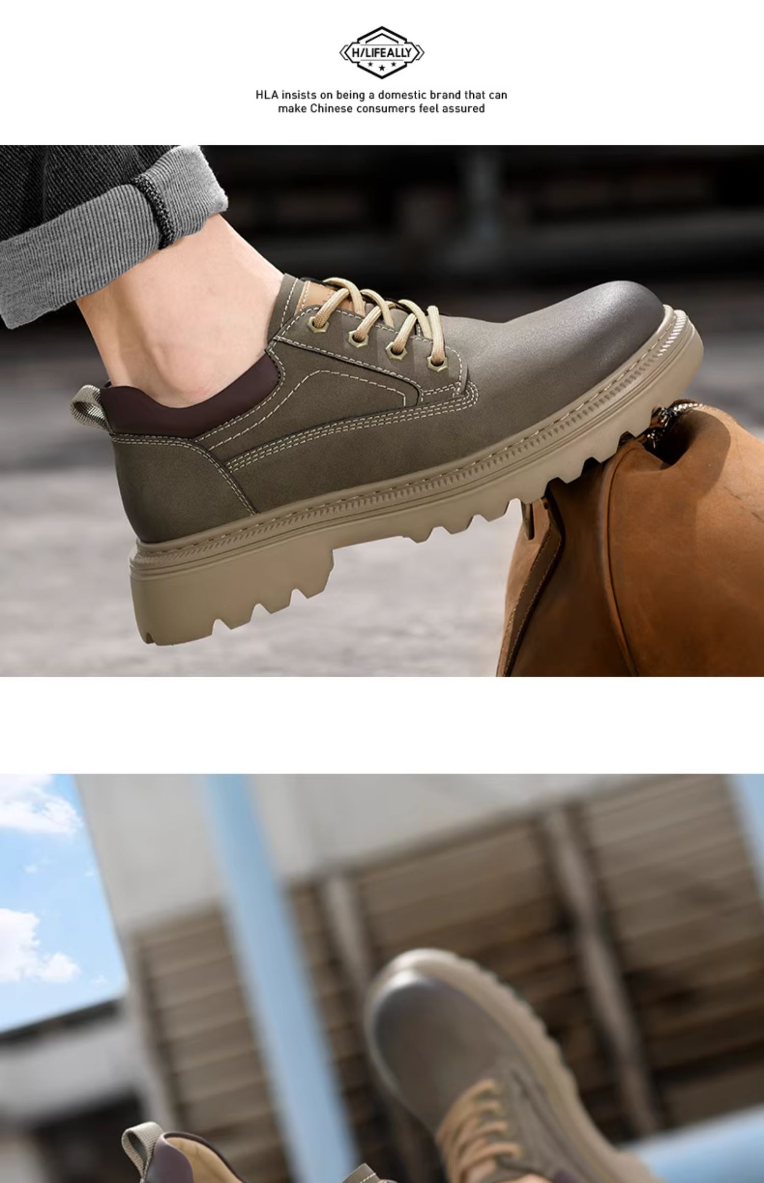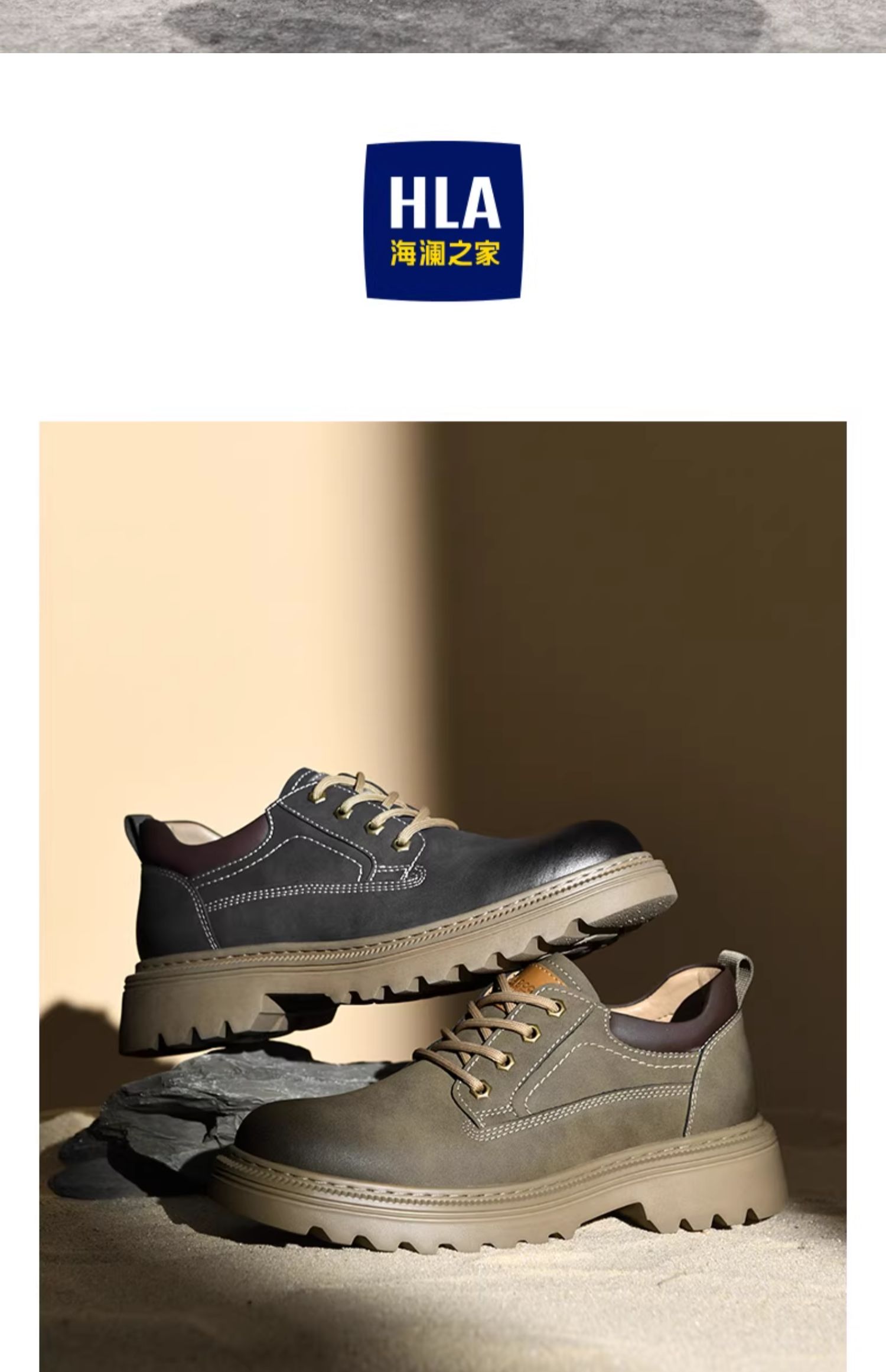 HLA/海澜之家男鞋新款夏季复古百搭耐磨工装鞋低帮透气休闲皮鞋
