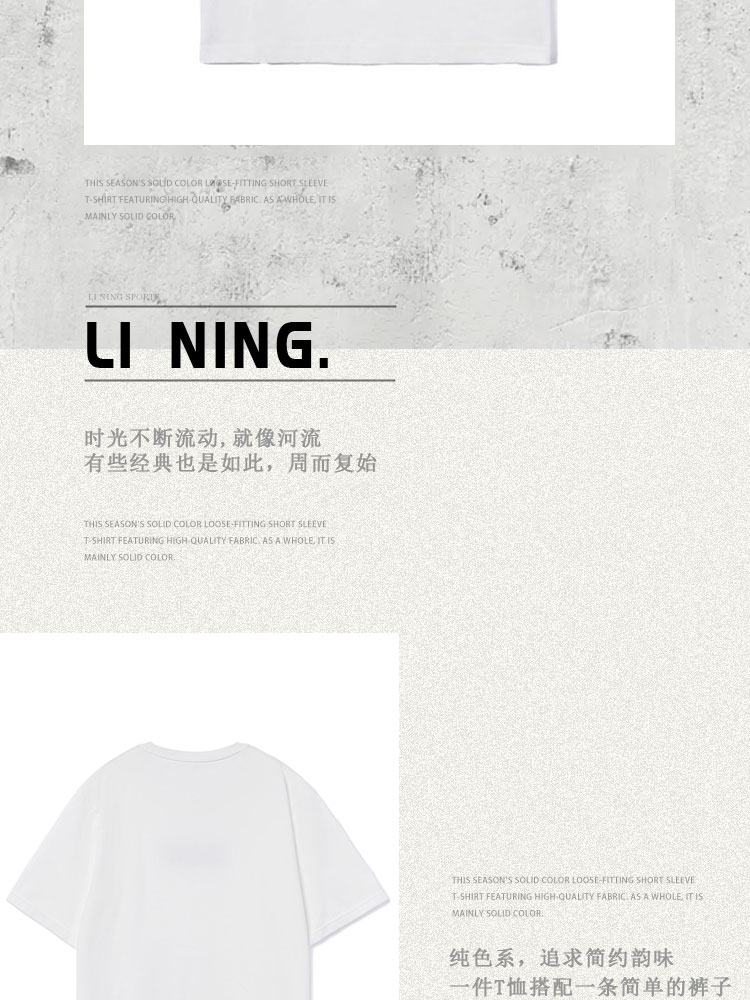 李宁短袖T恤男夏季正品2025新款宽松棉休闲ins潮半袖白色体恤上衣